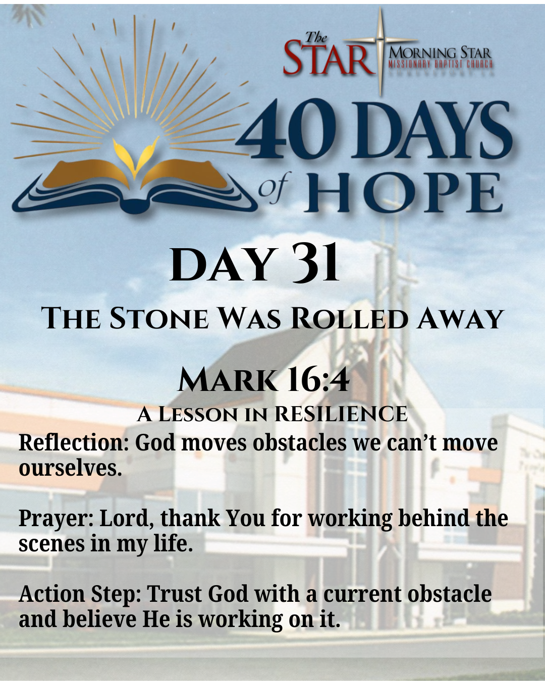 Pastor Jackson emphasizes the transformative power of forgiveness and resilience through faith in God. He illustrates how letting go of grudges and embracing God's grace can free us from the burdens of bitterness and lead to personal healing and renewal. By trusting in God's plan and timing, even in the face of life's challenges, we can find hope and purpose, knowing that God's love and resurrection power are always at work in our lives. Enjoy the journey as we travel through 40 Days of Hope!